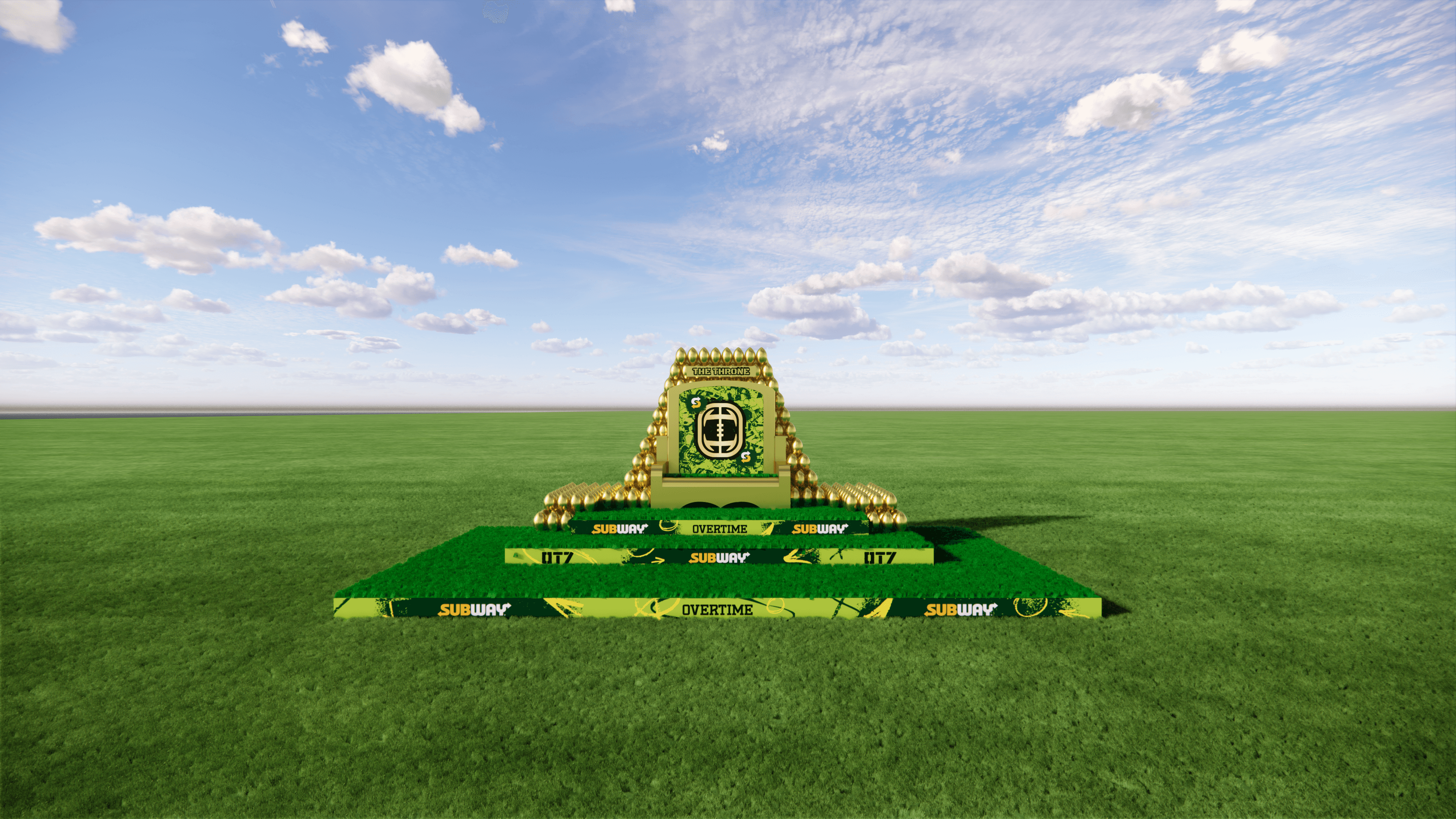 Partnered with Overtime to reimagine youth football’s biggest stage — leading the end-to-end strategy, creative direction, experience design, 3D rendering, fabrication/production, install/dismantle, logistics, and live execution of OT7 Season 4 across two cities and six weekends.